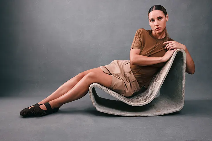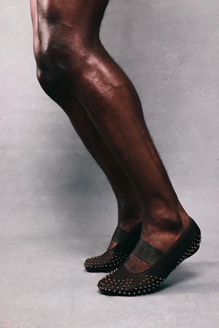 A rubber sole sits underfoot and echoes the aggressive grip pattern of the classic Mostro. This detail grounds the shoe in its sports-inspired DNA. The lineage of the Mostro originally borrowed elements from track-and-field styles. It also drew influence from surfing footwear. The new ballet flat retains these athletic references within its low-profile structure.