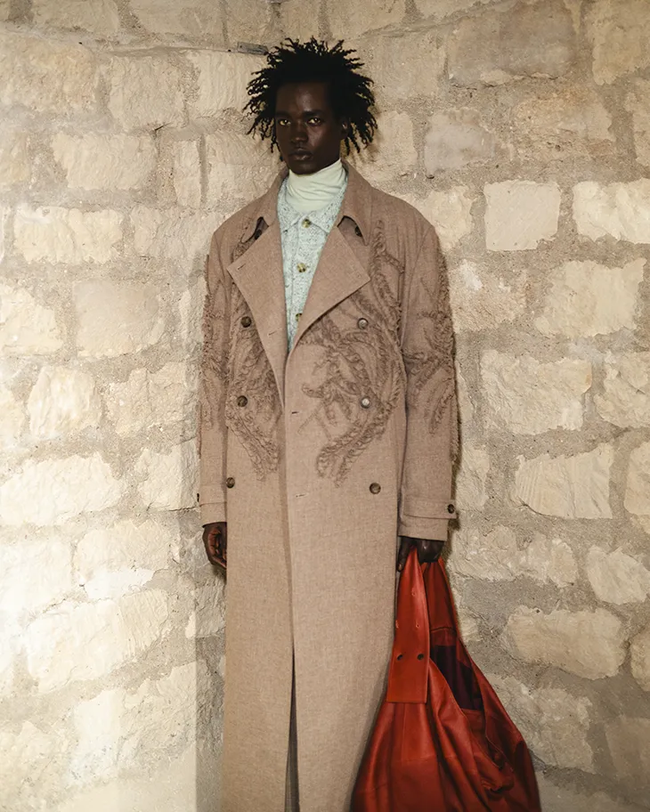 The making process rejects control through concept alone. Artisans follow the flow of fabric through skilled needlework guided by touch and responsiveness. These inscriptions release both maker and material, allowing transformation into forms that exceed individual components. The result avoids reproduction of the past or praise of ancient customs. Instead, the collection seeks to awaken dormant sensibilities and unsettle the present moment.