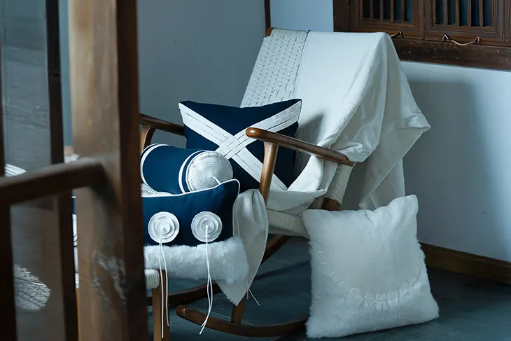 Her answer doesn’t lie in motifs or ornamentation, but in design thinking itself. Through multi-regional practice, Xie has developed a method for translating visual language, culture, and spatial rhythm into forms that can be used, understood, and felt. YarnGi, the home decor brand she co-founded with landscape designer Yue Zhao (Lulu), is the most visible result of this inquiry, a brand that threads cultural meaning into contemporary life through textile. Now based in the U.S. and steadily gaining visibility through exhibitions, curated markets, and cultural collaborations, YarnGi has resonated with a growing audience drawn to its cross-cultural sensibility and tactile storytelling. As co-founder and design lead, Xie brings conceptual depth and systems-level clarity to the brand, ensuring every object is not only beautiful, but communicative.