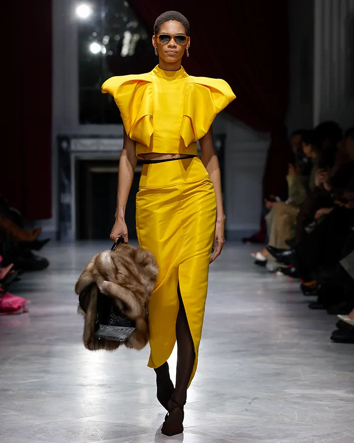 Fall 2026 presents a figure who commands space through restraint, with silhouettes and drapes shaped by structure and intention. The collection defines power through composure and precision. Mohapatra describes a woman who leads with confidence and courage, grounded in insight. She stands contemplative and decisive. She carries control through posture and proportion.