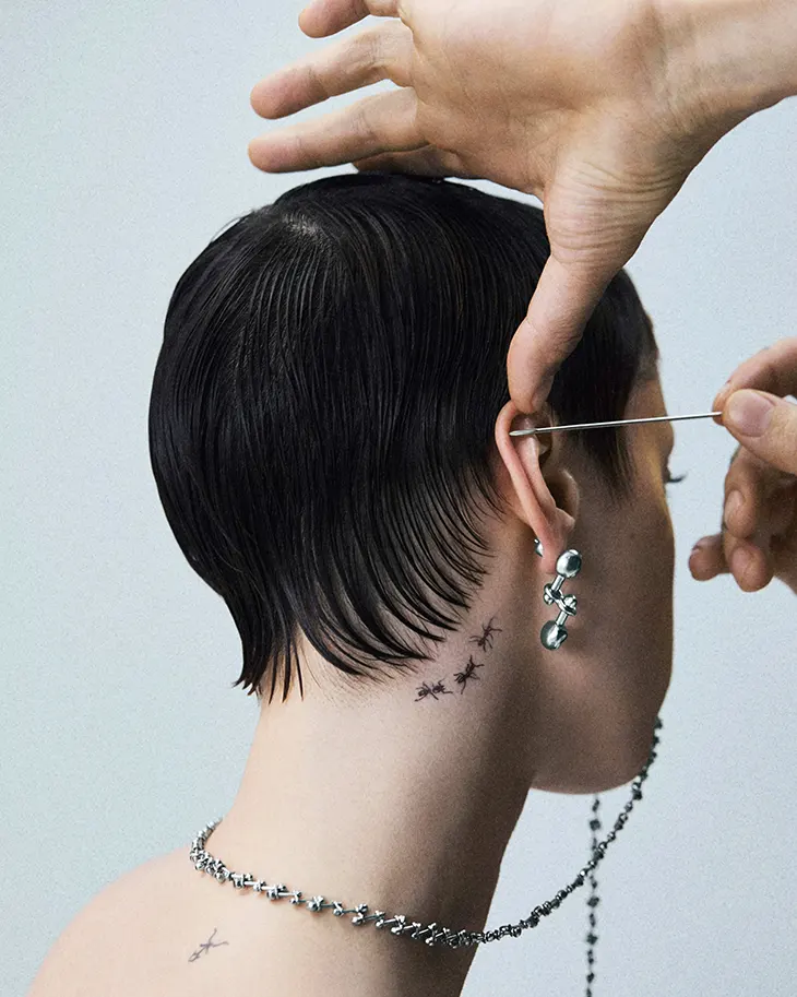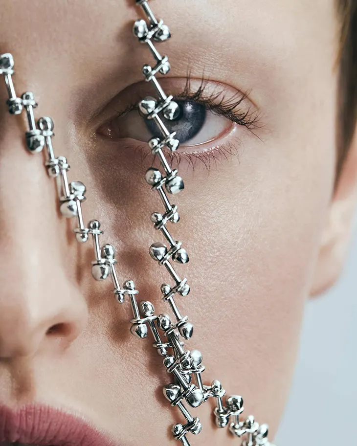 The Jumbo pieces assert architectural clarity. Sculptural volumes introduce weight and presence, framing the body as a site of expression. Rings, necklaces, bracelets, and earrings assume the character of structures. Their expanded proportions create physical emphasis while preserving the collection’s compositional restraint.