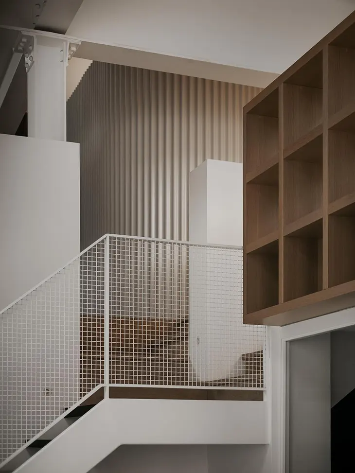 Rather than erasing the building’s industrial memory, the studio works within it, refining how volume and intimacy coexist.