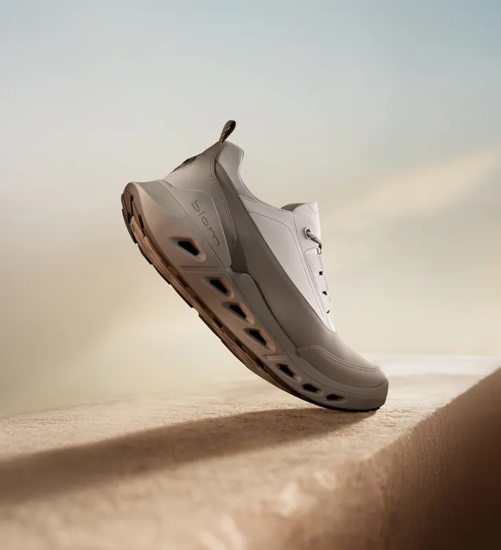 BIOM, short for biomechanical optimization, emerged after ECCO scanned the feet of 2,500 athletes to understand how the body naturally moves. Inspired by barefoot runners, the technology supports the foot’s natural motion by shaping the shoe around the anatomy of the wearer. The result delivers stability, flexibility, and a precise fit that works with each stride. From the first wear, the structure encourages balance and fluid transitions, whether for daily commutes or extended outdoor walks.