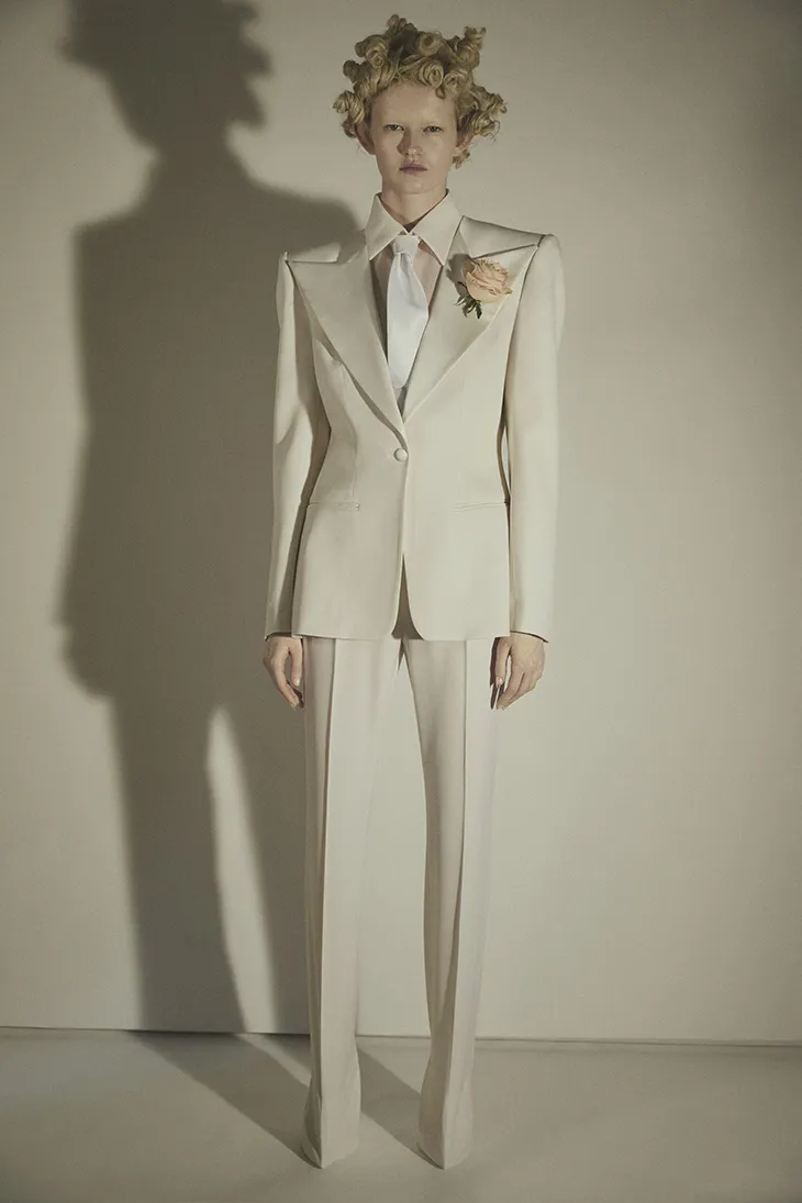 These final looks reinterpret the archetype of the aristocratic bride, a recurring emblem within haute couture and the maison’s identity. Through material choice and construction, the garments reference tradition while remaining grounded in the present vocabulary of the house. With The Resurrection, Francesco Scognamiglio advances a symbolic vision of couture where spirituality, material presence, and a contemporary outlook coexist through disciplined design and crafted form.