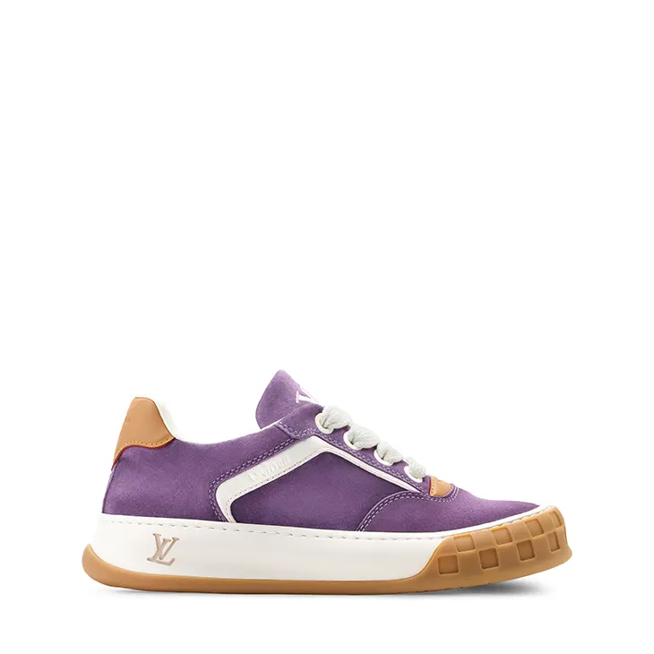 The sneaker comes in a wide range of materials and finishes. Options include worn-in denim, colorful calf suede, woven Damier, plaid canvas, and gem-embellished goat leather. Embroidered denim, printed calf, and Monogram stencil-rubbed canvas add further variation, expanding the model across textures and surface treatments.