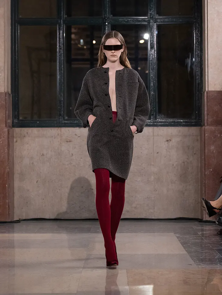 MM6 Maison Margiela presented the Fall Winter 2026 collection inside Milano Centrale, a location defined by movement, pause, and anticipation. The station offered a ready-made cast of characters, travelers in transit, figures suspended between arrival and departure. The show translated this environment into a constructed scene. Each model represented a recognizable type, someone who could disappear into the crowd or step forward with intention. The runway mirrored daily life while remaining unmistakably staged, reinforcing the tension between observation and performance.