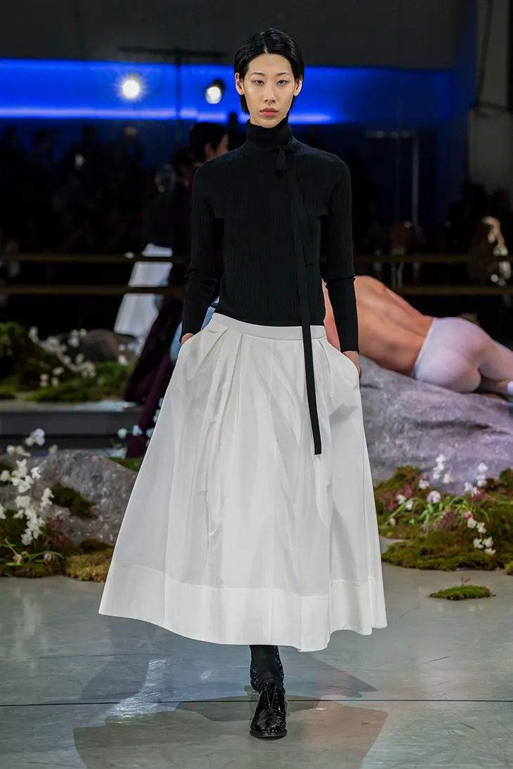 “George Platt Lynes’ understanding of form, proportion and elegance was the main reference for this collection, informing both the silhouettes of the looks and the craftsmanship behind them,” said McDowell.