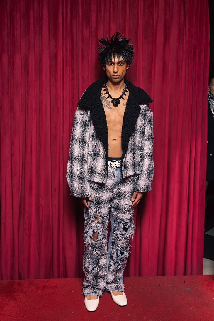 RIO returned to New York on February 15 with Fall Winter 2026, titled A Poem & A Protest II, presented at Jean’s. The collection builds on a narrative first introduced in Spring Summer 2026 and pushes further into the brand’s study of duality. This season sharpens the tension between softness and resistance, glamour and grit, and frames clothing as both expression and defense.