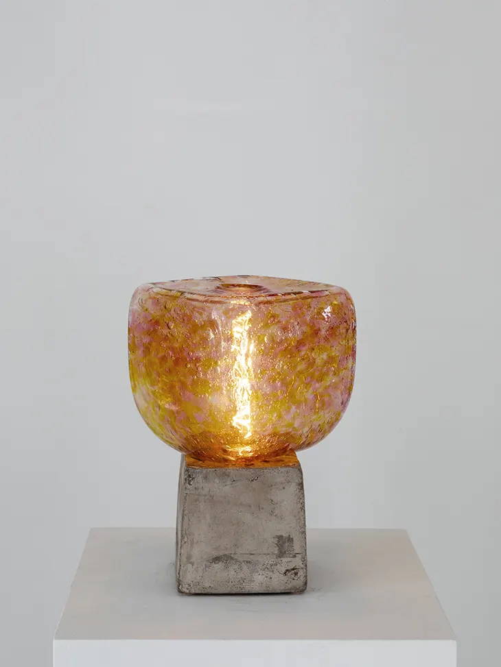 The Mirage lights oscillate between reflective solids and glowing voids. What did you want viewers to experience when encountering these works? – I work from a single mold for each glass piece, which I reuse repeatedly. As soon as a vessel comes out of the mold, I deform it through flame and gravity, pushing and stretching it so no two are ever the same.