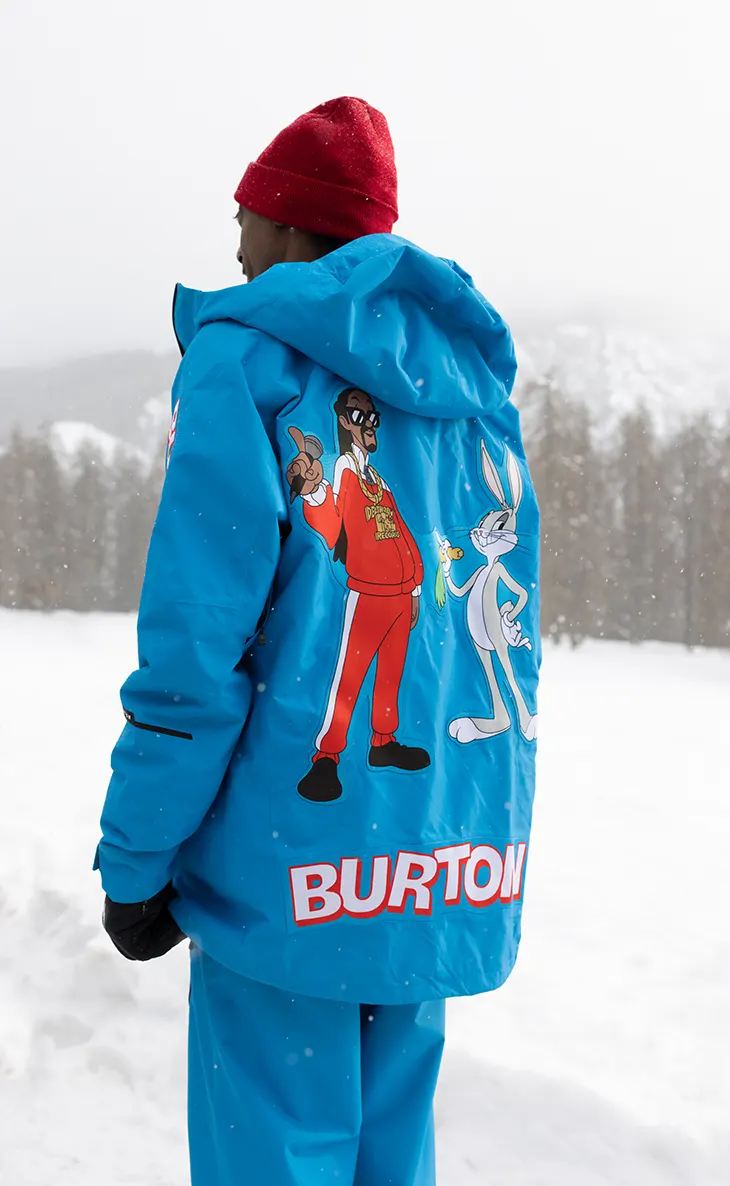 The new hardware belongs to the “From Burton to the World” collection, currently used by professional athletes in Halfpipe, Slopestyle, and Big Air competitions in Italy. The graphic combines classic cartoon energy with West Coast cool to reflect the motto of late founder Jake Burton Carpenter: “Have as much fun as possible.” Snoop Dogg recently hit the mountain with Burton rider Zeb Powell and characters Bugs and Lola while wearing a custom Burton Reserve kit he designed himself.