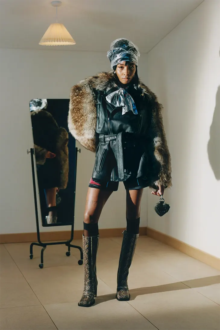The Fall Winter 2026 collection had already drawn attention during previews earlier this year. The lineup included hot pink fur pieces, dark denim, flocked trousers, jackets with corset-style stitching, and lingerie elements integrated into dress shirts. Rose described the direction of the collection as a reinterpretation of decadence filtered through her design language.