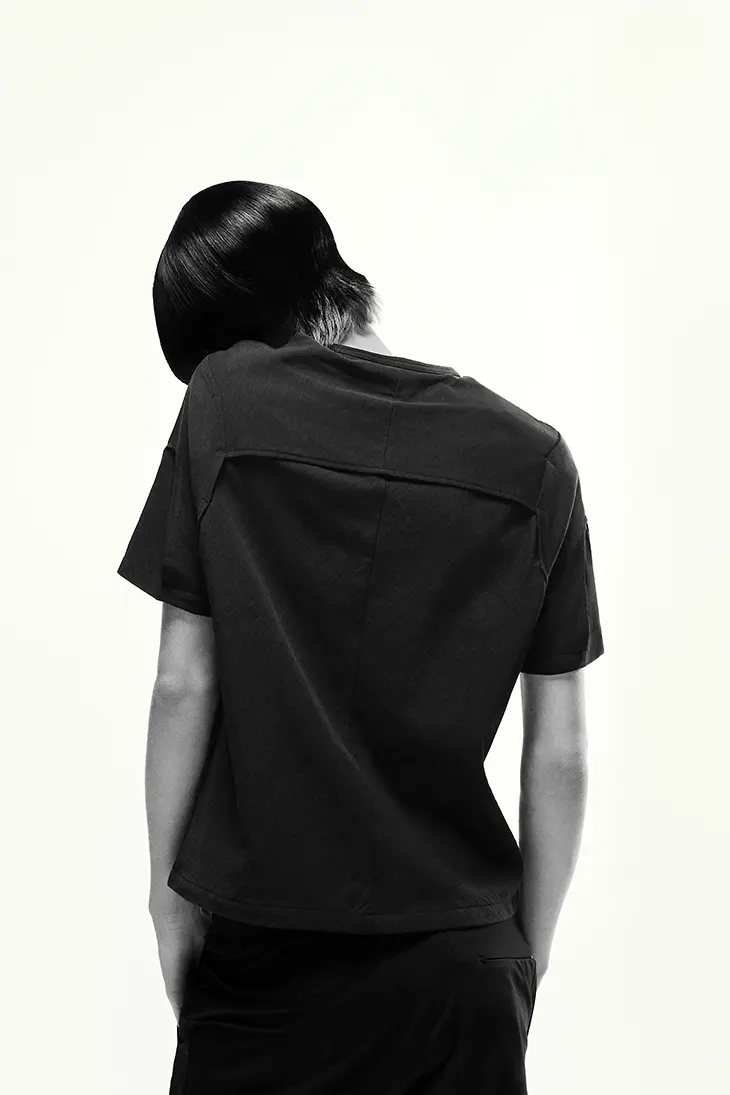 Beyond footwear, the collection extends into a focused range of garments that maintain the same structural approach. A jacket, pants, T-shirt, and baseball cap form the apparel offering, each designed with attention to functionality and movement. The pieces use anatomical cutlines that follow the body, allowing for fluid motion without excess material.