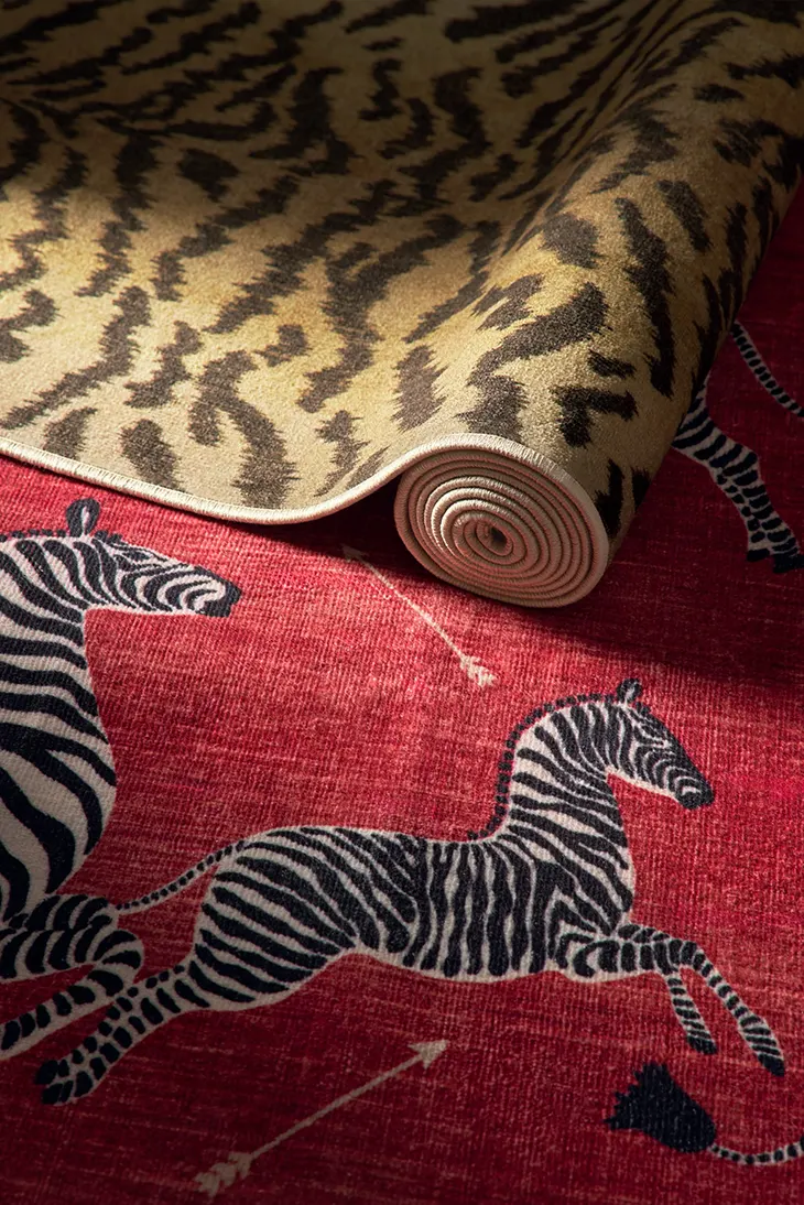 The Ruggable x Scalamandré collection  is a clear example of how the brand uses collaborations to elevate the category. Exclusive to Ruggable.com, it reinterprets Scalamandré’s recognizable motifs, animal prints, heritage patterns, iconic decorative language, through a “fresh, livable lens.” The promise is statement design that can survive real homes, including kids, pets, and daily traffic.