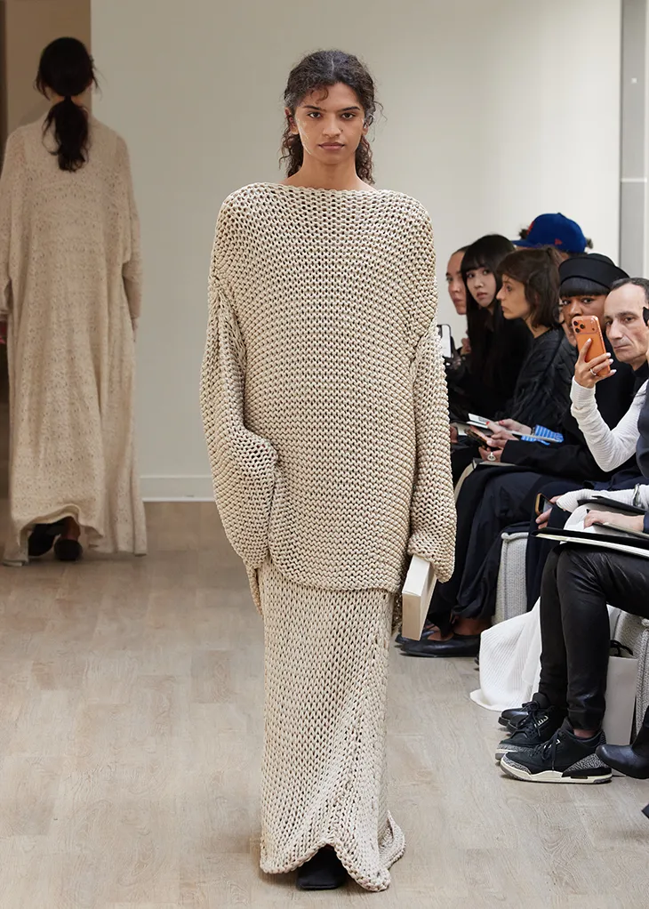 The show adopted a salon format. This arrangement placed each look close to the viewer and encourages attention to the collection as a complete system. Through this intimate structure, every garment connected to the broader series of gestures that define the season.