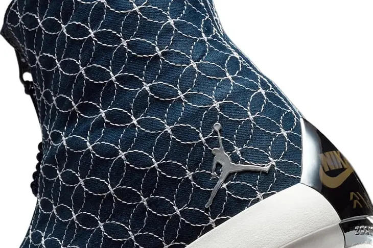 The Air Jordan 4028 operates as a platform for reinterpretation. The silhouette combines the base of the Air Jordan 40 with the tall zippered cover introduced on the Air Jordan 28. This structure allows for layered design decisions that extend beyond standard performance footwear. Hachimura uses this format to reshape the upper, replacing the original neoprene shroud with a textured college navy denim.