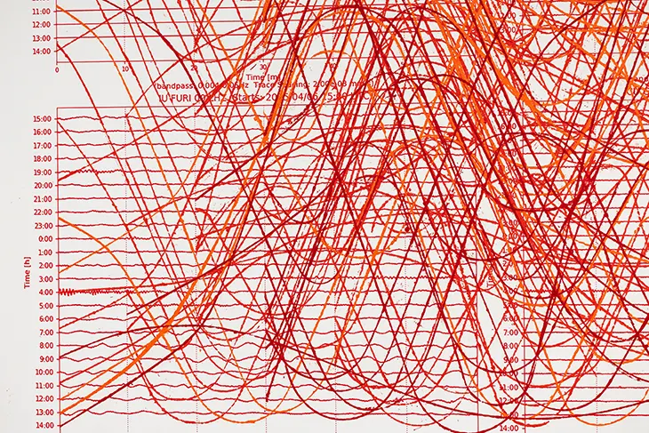 The “Earth’s Pulse” is a faint, almost ghostly phenomenon that repeats every 26 seconds. Conceptually, what drew you to this specific signal, and how do you think its periodicity resonates with human temporalities such as breath, heartbeat, or ritual? – We were drawn to its subtlety, a steady but almost imperceptible oscillation. Its rhythm echoes the body’s cyclical movements: breathing, pulse, sleeping, waking. It feels like a quiet survival signal from the planet, always returning, constantly shifting slightly. We’ve long been interested in phenomena that hover between presence and absence, that ask us to tune our attention differently.
