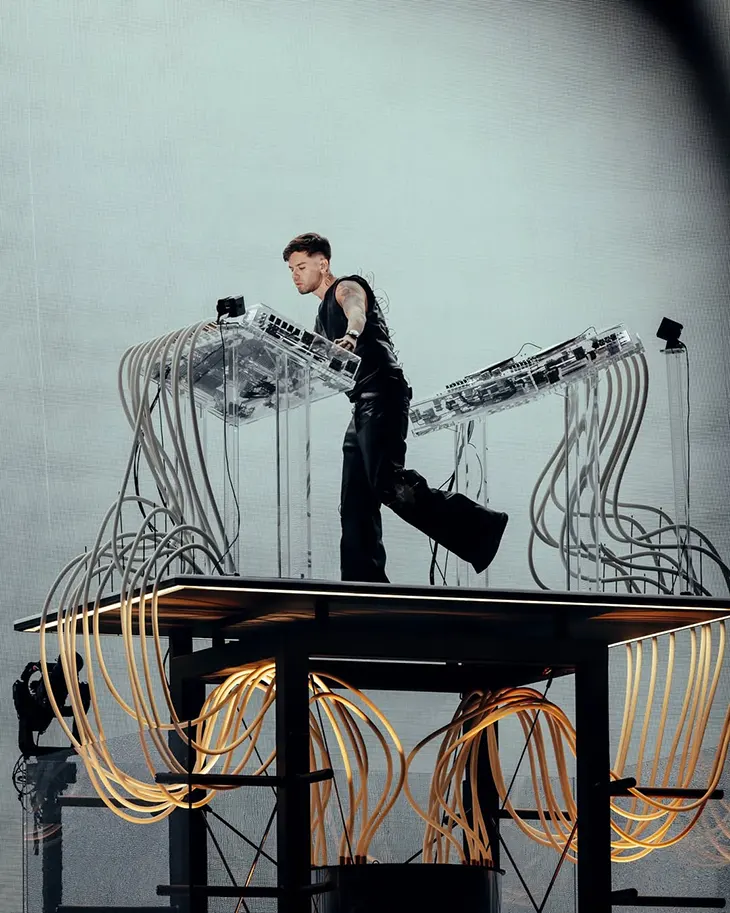 The visuals tie directly to Æden, Anyma’s audiovisual project and upcoming world tour. He introduced the project in February through a separate Instagram post. That earlier video presents a similar sequence, with Anyma waking while connected to wires in a deserted environment. As he rises, a large figure emerges nearby, combining robotic elements with a marble-like form. The two figures face each other before the sequence ends, leaving the interaction unresolved.