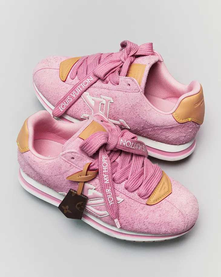 Pharrell Williams and j-hope approach the sneaker through personal references and precise detailing. The original version served as a custom companion for j-hope during his tour, with comfort playing a central role in the design. Louis Vuitton adds hand-stitched and hand-painted elements across the shoe, bringing a near-tailored quality to the 2000s-inspired silhouette.