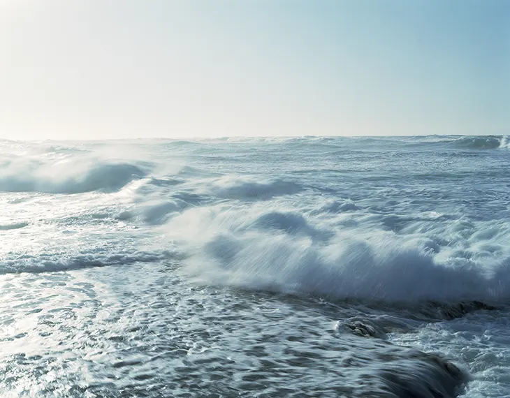 Alongside the campaign, Homma’s New Waves series introduces a parallel line of imagery. The photographs focus on waves in motion, capturing their natural energy and continuous shift. The series reflects movement through form, where water creates rhythm and variation without repetition. The waves carry a sense of openness and release. Their movement suggests freedom without structure, shaped only by external forces.
