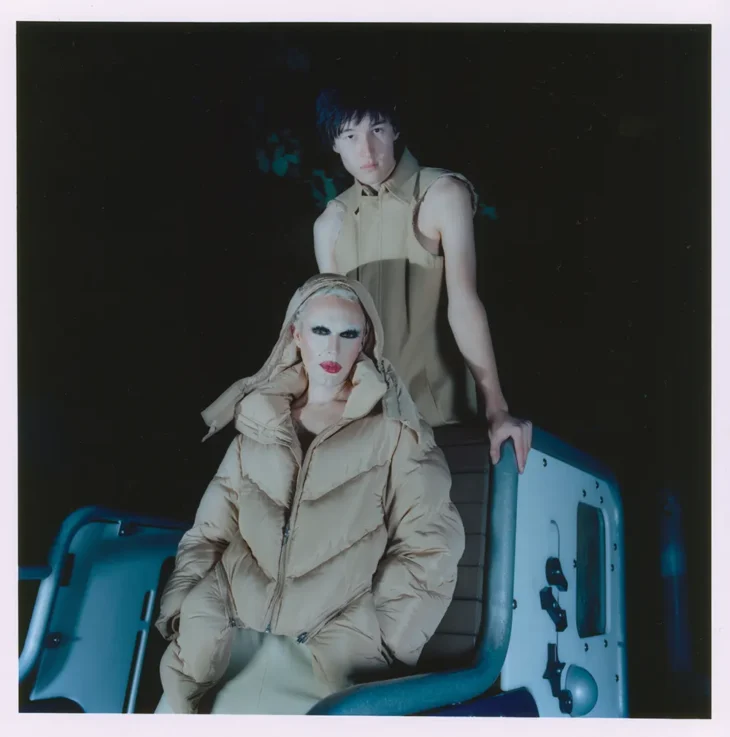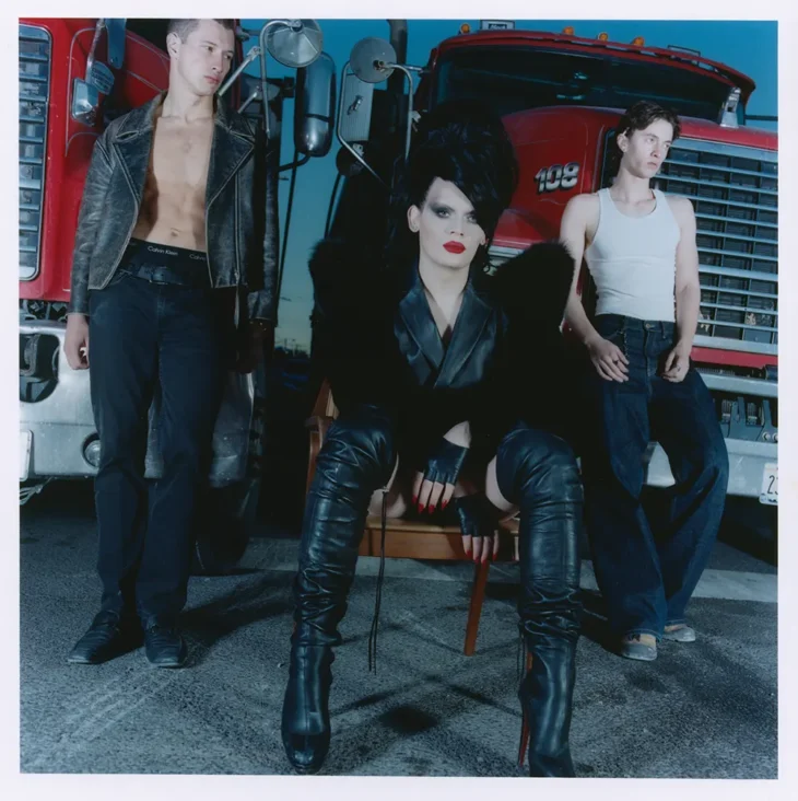 Styling, grooming, and set design reinforce this dynamic. Surfaces hold tension. Materials resist softness. Nothing settles into comfort. The environment supports the figures without containing them, allowing each presence to extend outward rather than fold inward. The result is a series of images that remain active, refusing resolution.