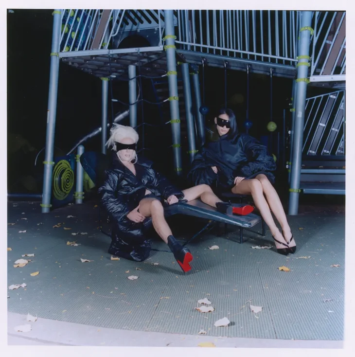 CT and Jules wear shoes CHRISTIAN LOUBOUTIN, lingerie LA PERLA, coats FERRAGAMO