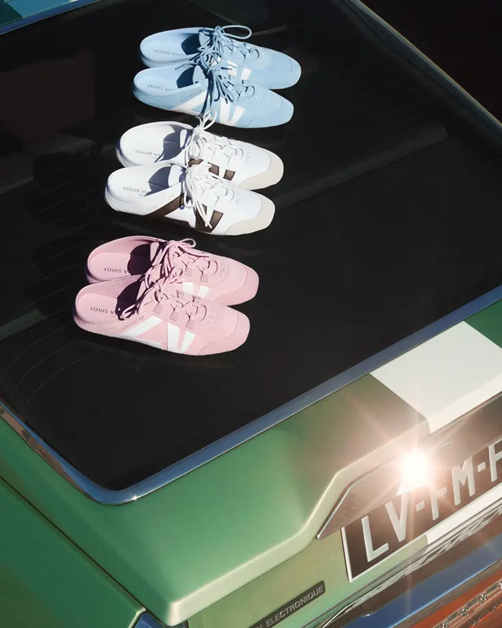 The LV Sneakerina returns one year after its introduction, expanding into mule and boot versions. The silhouette remains streamlined, designed to support movement while maintaining a clean profile. Materials include leather, suede, and jersey, offered in both two-tone and monochrome finishes.