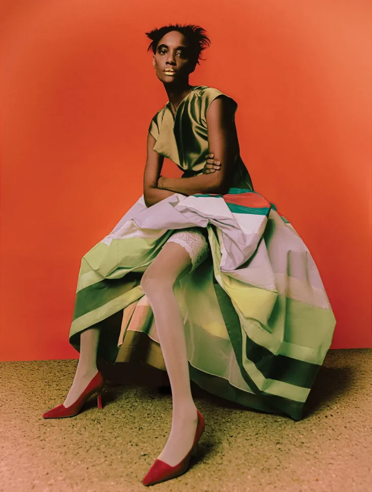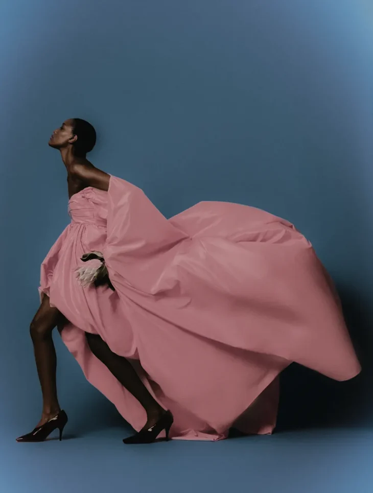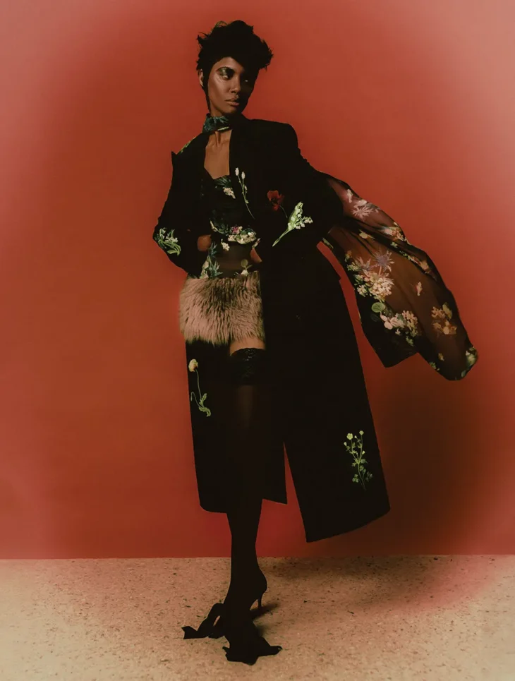 What appeared as restraint in the initial frame opens into a more layered composition. Mariane moves through a series of constructed environments where posture, styling, and framing define the narrative. The focus remains exact. Each image builds on the same visual language, where control holds the composition together and identity takes shape through repetition and variation.