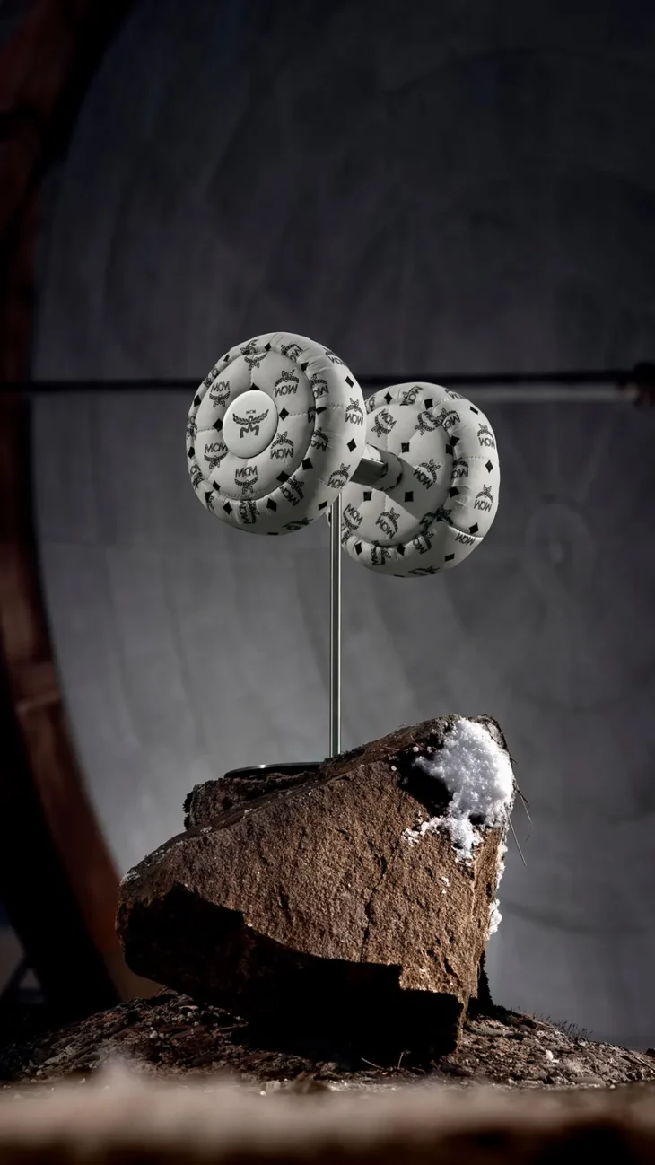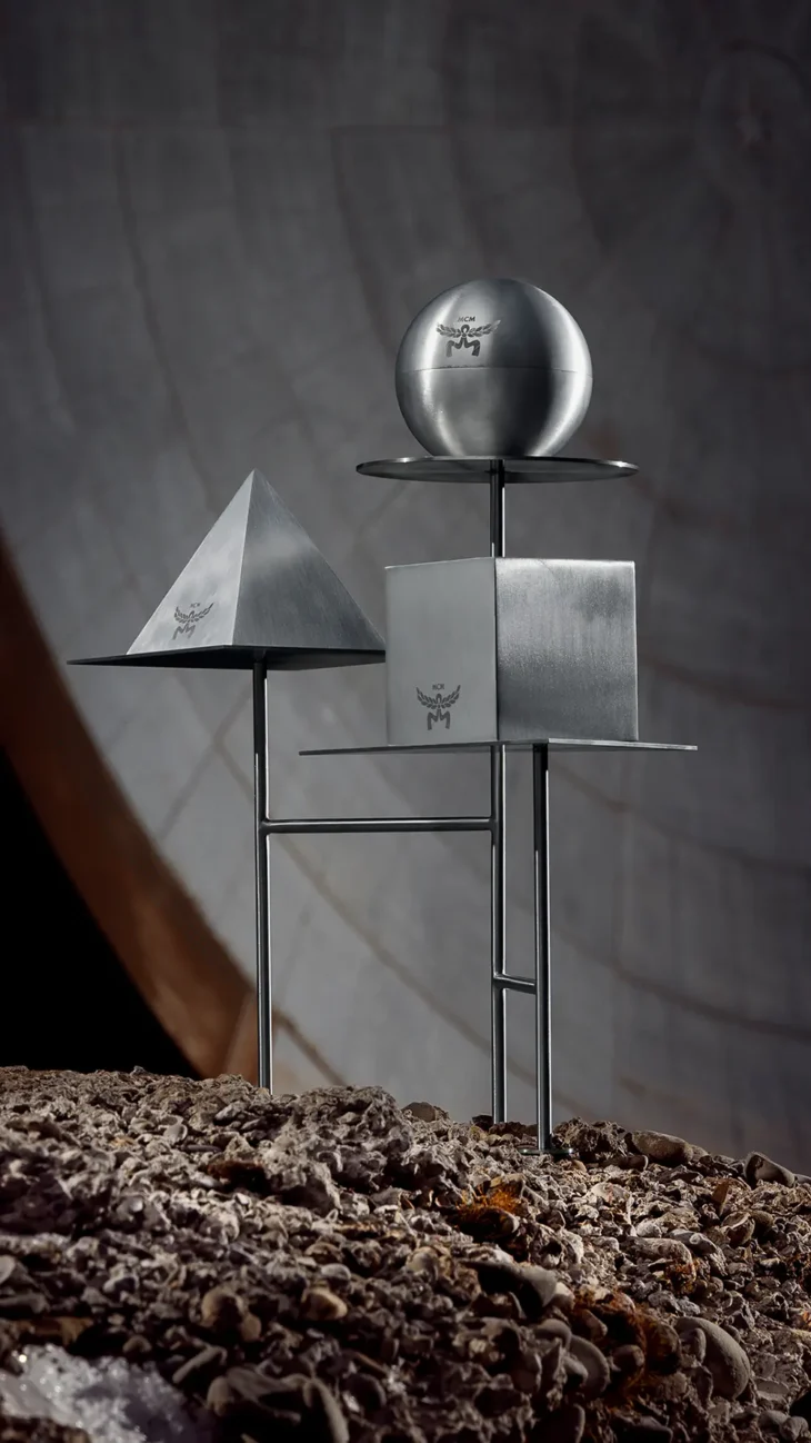 Alongside the installation, MCM introduces a selection of products tied to the project. These include updated versions of the Ella Boston, Ottomar Weekender, and New Liz Shopper, produced in variations of Visetos, alongside the MCM x Nymphenburg Diamond Cup, a porcelain object defined by its clean geometry. Additional releases include the Cosmic Star fragrance and a Mars Mask developed in collaboration with Marcolin, extending the project into accessories and product design.