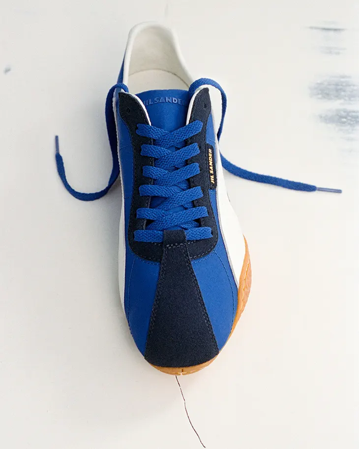 The PUMA x JIL SANDER K-Street will be available globally in the suede version at selected JIL SANDER stores and through retail partners beginning April 8, 2026. The blue nylon version will be exclusive to JIL SANDER retail and online channels.