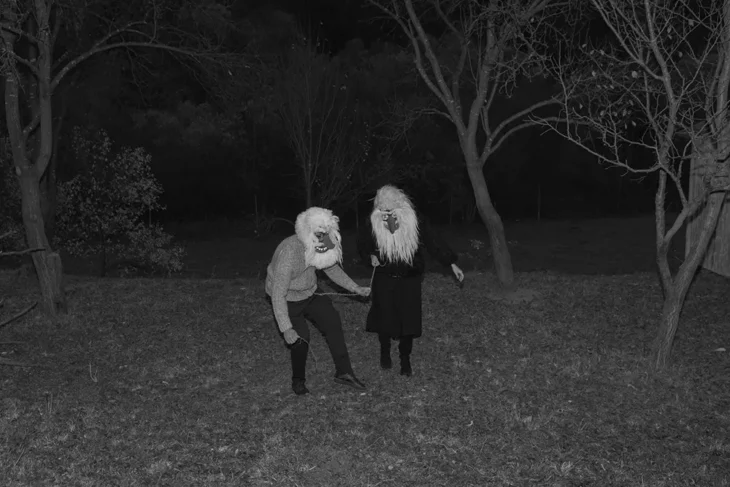 Dance rituals like Chipărușul turn mourning into performance. How do you handle the balance between the sacred and the aesthetic when photographing such practices? – Chipărușul is a funeral dance unique in Europe, according to some ethnologists, a pre-Christian ritual linked to ancient Thracian beliefs about death as a joyful rebirth. The dance was practiced in the mountainous region of Vrancea and originally involved twelve men in sheep’s wool masks. They would light a fire outside the house of the deceased and dance ceremonially, linked through a chain symbolising the “chain of life”. Their periodical leaping over the flames is a gesture thought to represent the purification of the soul and its passage into the next world. The aim of the Chipărușul is to protect the family from the return of the spirit as a harmful presence while simultaneously guiding the soul on its path to transcendence.
