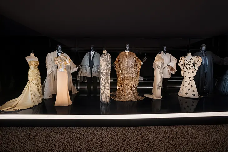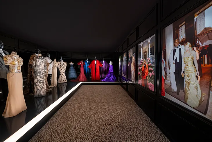 The exhibition extends beyond garments through a range of archival material. Artworks, photographs, letters, and books from Talley’s personal collection appear alongside the clothing. Custom mannequins based on a sculpture by SCAD alum Stephen Hayes present the looks, adding a sculptural dimension to the installation. The exhibition also includes gowns worn by figures within Talley’s circle, including Anna Wintour, Renée Zellweger, and Lauren Santo Domingo.