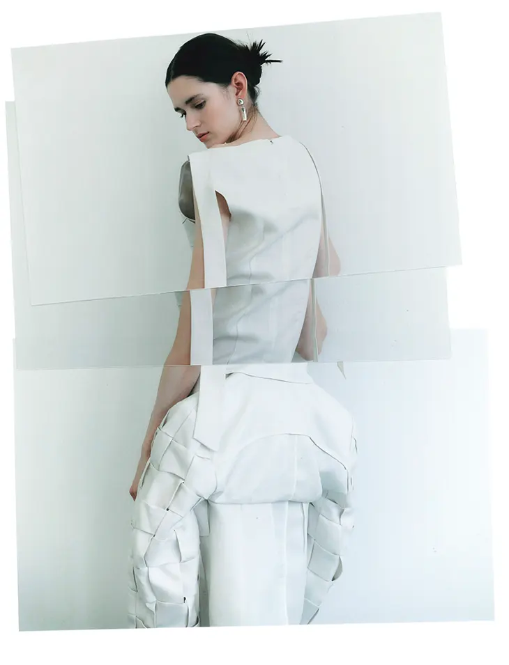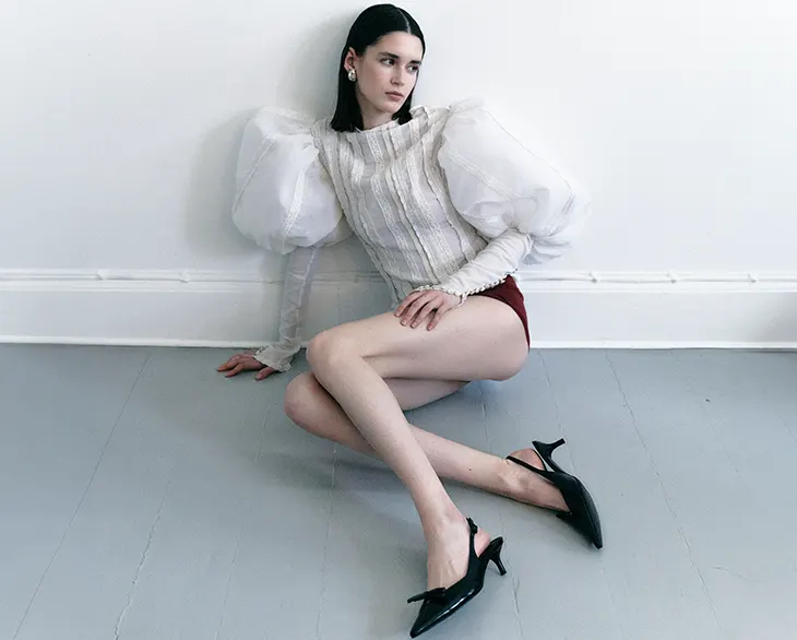 Styling by Simone Henneberg maintains a clear direction, while makeup and hair by Martine Mackenhauer stay restrained, allowing the focus to remain on form and composition. Production by The Gemini Agency, led by Thiravigah and Thiravisha Thiraviarajah, supports the editorial’s precise execution. The wardrobe moves across looks with a controlled rhythm, bringing together The Frankie Shop, MKDT Studio, Kinraden, Blankens, Source, Celine Nordahl, American Vintage, Agmes, Swedish Stockings, Art New York, Understatement, COS, and vintage pieces.