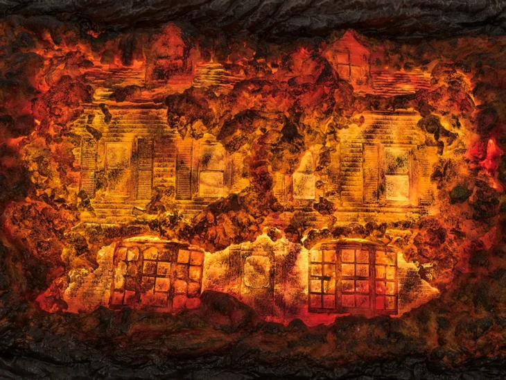 The balance is hard. I’m always on the hunt for new materials and am learning a ton of cool, unexpected stuff in the process. I have a lenticular printer I work with in Missouri, and I decided to try a new adhesive to adhere it. A big mistake, the glue reacted with the vinyl on the back of the print. It started bubbling, then disintegrating, but it kind of works in a way.
