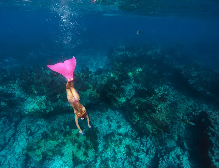 The campaign, shot by Charlotte Rutherford outside Miami, extends the collection’s direction through a series of images set in and around water. Larsson’s approach to the campaign includes a deliberate shift in how she presents herself. Alongside composed images, she includes moments that break from polished expectations, such as shots where she wears snorkeling goggles underwater. The campaign feels aligned with her public persona, where humor and self-awareness sit alongside a clear sense of direction.