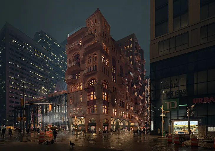 The Dissolving Corbin Building is Mo’s most widely recognized independent project. In it, he reimagines a Romanesque Revival landmark in New York’s Financial District as a vertical mixed-use hub where heritage, food culture, and contemporary living merge into a single productive system. The project has received more than ten international awards, including Gold from MUSE, NY Architectural Design, French Design, Global Future Design, and American Good Design Awards, Silver from IDA and A’ Design Award, and an Honorable Mention from Architecture MasterPrize, spanning architecture, design, and sustainability categories across multiple international jury platforms.