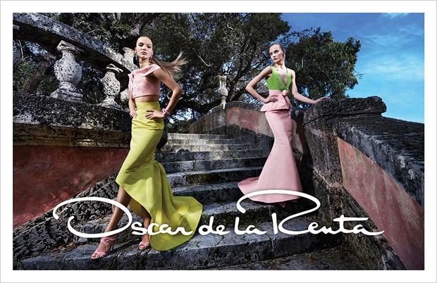 Top models Daria Strokous and Sasha Luss team up with fashion photographer Steve Hiett for Oscar de la Renta‘s Spring Summer 2015 advertising campaign. In charge of styling was Natasha Royt with makeup by Gucci Westman and hair styling by James Pecis.