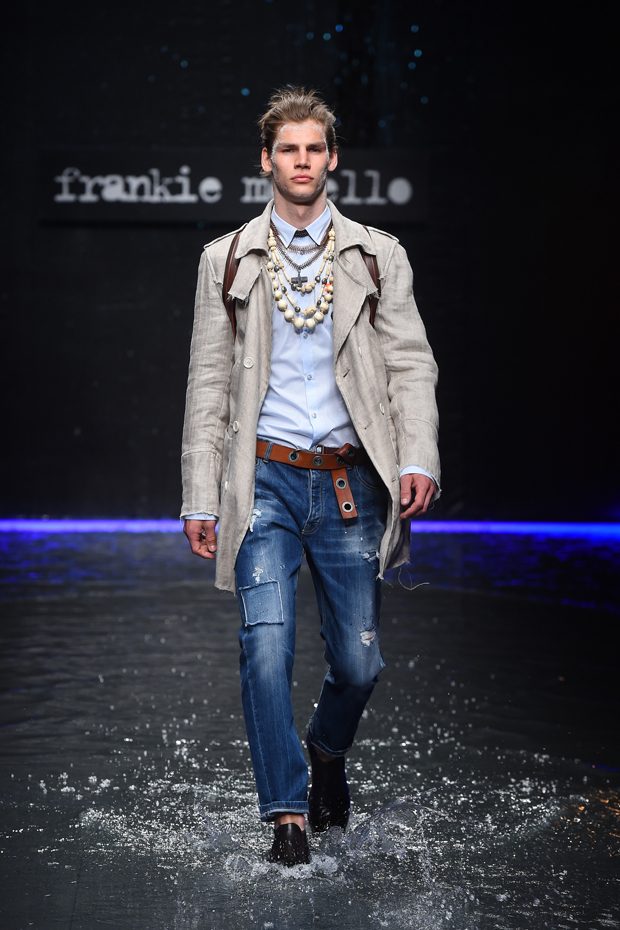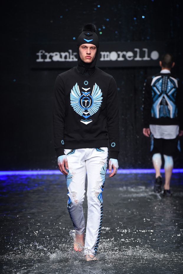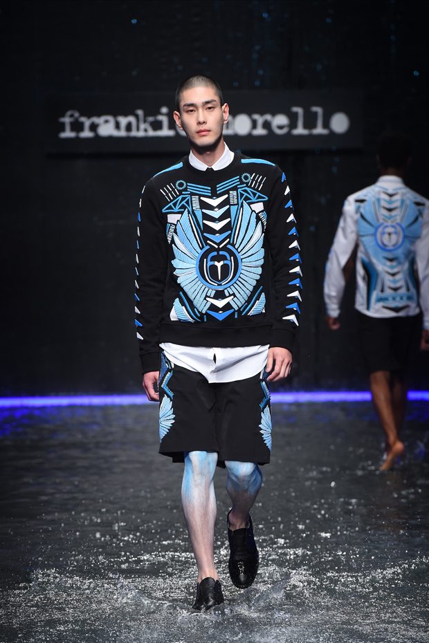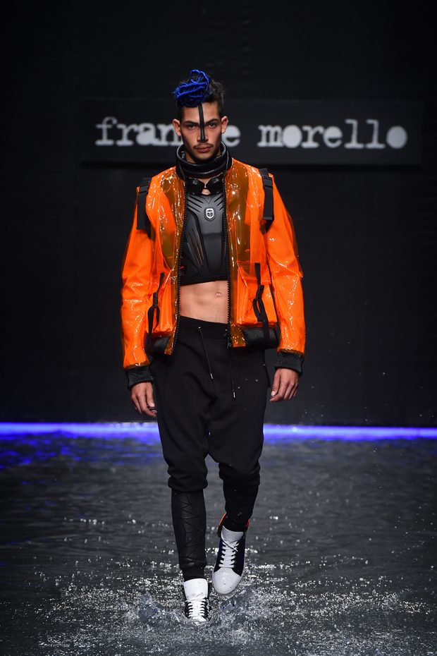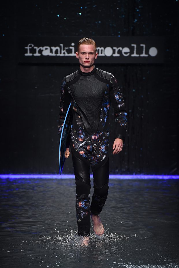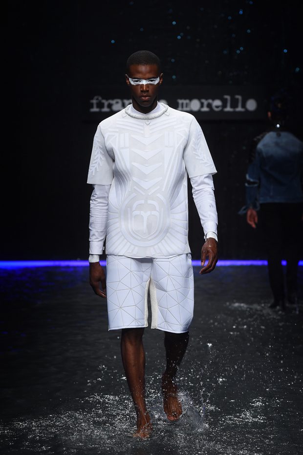 Discover Frankie Morello’s Spring Summer 2018 collection presented during the Milano Fashion Week. The first part of the collection, #Beach, is inspired by the landscapes of almost lunar space, while the second part, #InsideWater, is inspired by the marine world.