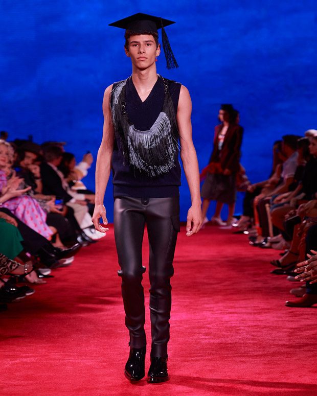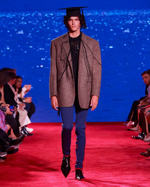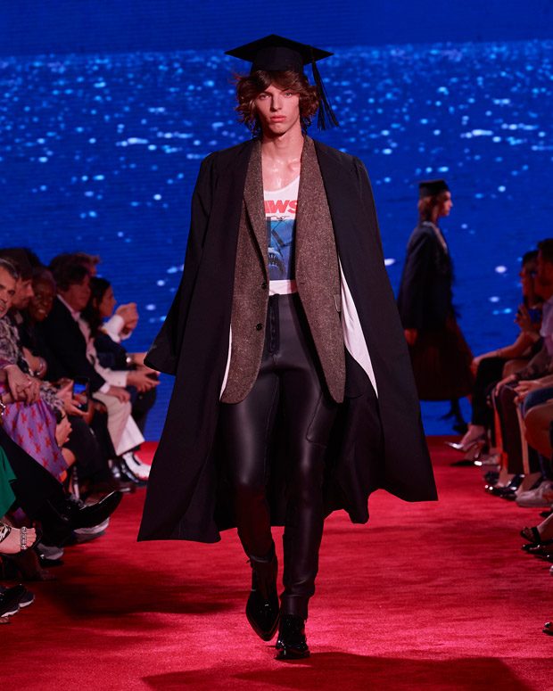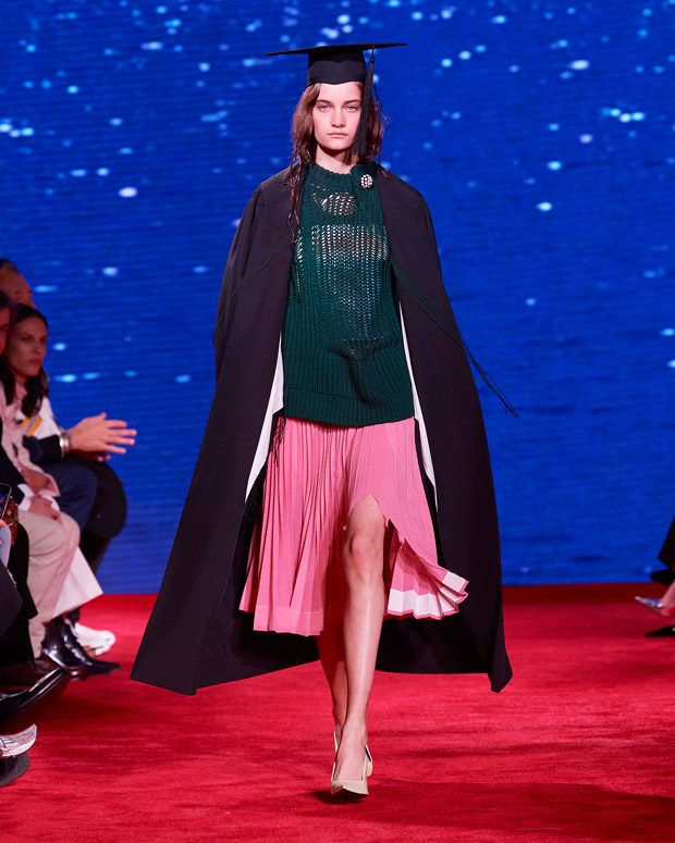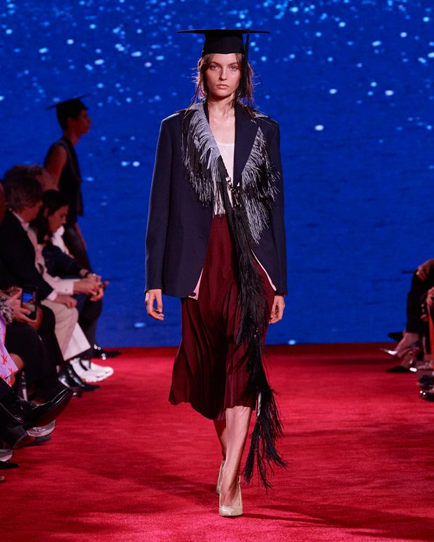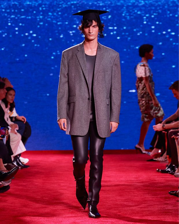 I’ve always been fascinated by the dress codes of different generations – of mothers and daughters, fathers and sons; how the changes between different generations of families reflect the changes of American society. I love the movie The Graduate and the different family dynamics at play. Like the film, this collection explores taboos and temptations, shifts in culture and community, but ultimately, the overarching theme is love.” – Raf Simons