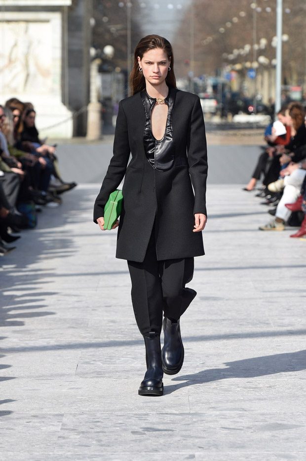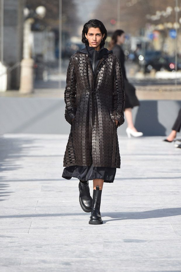 Presenting a new vocabulary for Bottega Veneta, leather and the house’s Intrecciato weave is reinterpreted and evolved. Polished dresses and layered knitwear pair with armour-like outerwear, sharp tailoring and confident accessories.“
