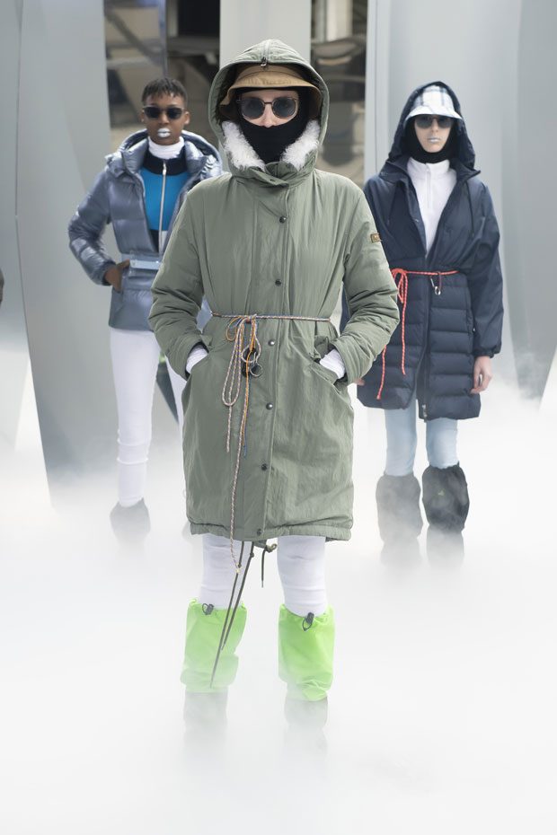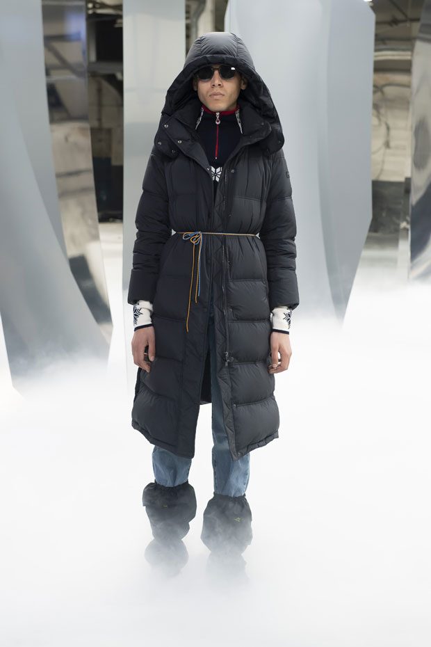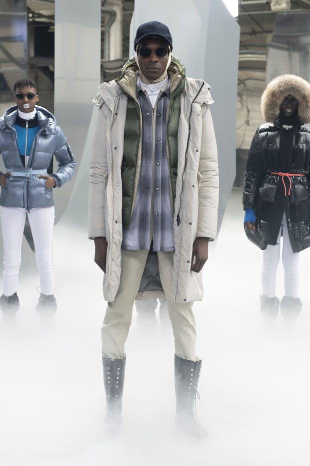 Like a symphony with alternating rhythms, the collection embodies a concept of timeless beauty interpreted in two different movements, opposite but joined together by the same image. All garments have been studied to give a sense of protection and warmth in an eclectic succession of timeless style. Comfort, beauty and sartorial tradition are perfectly blended with minimal design, functional details and high technology. A perfect mix of warm and precious fabrics combined with hypermodern technical fibres that are waterproof and sensitive to body temperature.– from Tatras